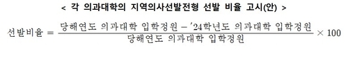 지역의사제 선발 비율은 그해 의대 입학정원에서 2024학년도 입학정원 대비 증원분의 비율로 규정됐다.
