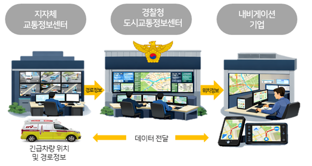 이에 경찰청은 각 지역 교통정보센터의 우선 신호정보를 경찰청 도시교통정보센터를 통해 길도우미에 제공하도록 시스템을 연계해 긴급자동차가 후방에서 접근하는 경우 긴급자동차의 위치와 경로 정보를 실시간으로 안내할 수 있도록 했다.