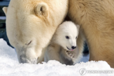눈밭 위 모성애…어미 잃은 아기곰 입양한 북극곰 포착