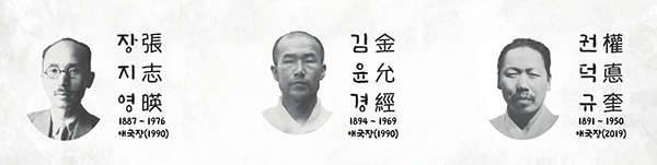 국가보훈처는 광복회·독립기념관과 공동으로 장지영·김윤경·권덕규 선생을 ‘2021년 10월의 독립운동가’로 선정했다고 밝혔다.