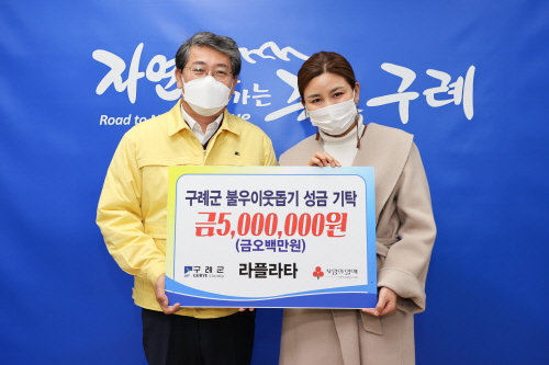 라플라타 카페를 운영하는 김미라 대표는 30일 구례군청을 방문해 어려운 이웃을 위해 써달라며 성금 500만 원을 기탁했다.