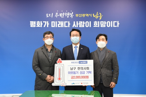 부산광역시 남구한의사회(회장 박광길)는 지난 12일, 부산 남구(구청장 박재범)에 희망 2022나눔캠페인 성금으로 200만 원을 기탁했다.