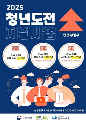 【국제일보】 인천 부평구(구청장 차준택)는 27일 구직단념청년을 대상으로 '청년도전 지원사업' 참여자를 오는 11월 2일까지 모집 중이라고 밝혔다.