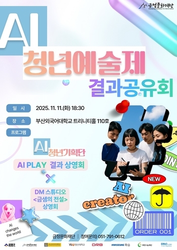 【국제일보】  부산시 금정구 금정문화재단(이사장 윤일현)은 차세대 청년문화 활성화 사업 'AI 청년예술제' 결과 공유회를 오는 11월 11일 오후 6시 30분부터 부산외국어대학교 트리니티홀에서 개최한다고 밝혔다.