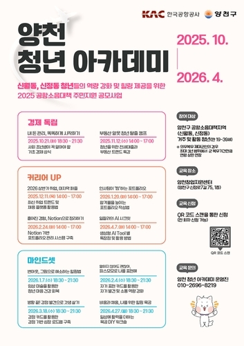 【국제일보】 양천구(구청장 이기재)는 지역 청년들의 진로 설계와 역량 강화를 지원하기 위해 '양천 청년 아카데미'를 운영한다고 5일 밝혔다.