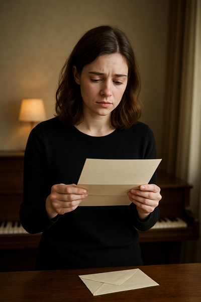 손에 든 편지를 피아노 위에 올려 놓았다.