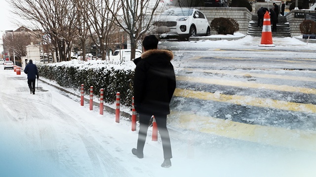 (서울=연합뉴스) 5일 도로 곳곳이 전날 내린 첫눈으로 꽁꽁 얼어붙으면서 고령층을 중심으로 빙판길 낙상 사고 위험이 커졌다.