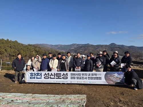 【국제일보】 합천군은 12일 쌍책면에 위치한 합천 성산토성 발굴 조사 조사 현장에서 지역주민 및 연구자를 대상으로 그간의 발굴조사성과에 대한 현장 공개와 함께 전문가 학술자문회의를 가졌다.
