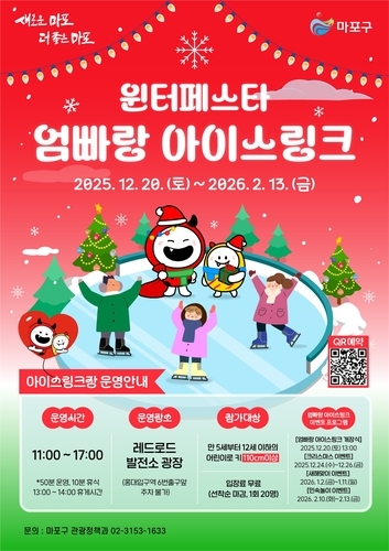 아울러 마포구는 아이스링크 주변으로도 크리스마스 장식과 화려한 조명을 더해 깊어가는 겨울의 분위기를 높일 예정이다.