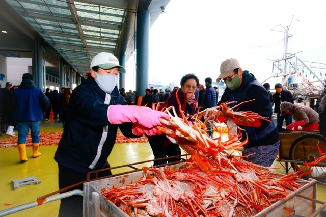 차가운 겨울 바다의 진미 울진대게가 죽변항과 후포항을 붉게 물들인다.