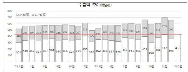 ![수출액 추이 [관세청 제공. 재판매 및 DB금지] / 연합뉴스](http://www.kookjeilbo.com/data/photos/20260209/art_17718139460452_3d9d87.jpg)
