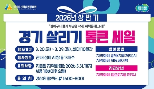 【국제일보】 시흥시(시장 임병택)는 고물가로 위축된 민생경제에 활력을 불어넣고 소상공인의 매출 증대를 돕기 위해 오는 3월 20일부터 29일까지 관내 전역에서 '2026년 상반기 경기 살리기 통큰 세일'을 개최한다고 밝혔다.