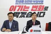 (서울=연합뉴스) 국민의힘은 2월 임시국회 회기 내에 대구·경북(TK) 행정통합 특별법안을 처리하기 위해 금명간 국회 법제사법위를 개최하자고 더불어민주당에 요구했다. 송언석 원내대표는 27일 국회에서 기자간담회를 열어 "3월 3일까지가 2월 임시국회 회기이기 때문에 가능하면 그 전에 '원포인트 법사위'를 개최하는 게 그렇게 어려운 일은 아닐 것"이라며 이같이 밝혔다. 앞서 국민의힘 원내지도부는 전날 대구·경북 지역 의원 25명을 대상으로 투표 등을 통해 의견 수렴을 한 뒤 'TK 통합법 처리'로 입장을 최종 정리했다. 송 원내대표는 "어제 대구·경북 지역 의원들의 의견을 수렴해 찬성하는 의견을 확인한 뒤 의총에서 보고하고, 민주당에 이 법안을 오늘이든 내일이든 법사위를 열어 처리해달라고 강력히 요구한 상태"라며 "다만 민주당 내에서 원내지도부와 법사위원장 간 대화가 어느 정도 진행됐는지는 확인하지 못했다"고 말했다. 이어 "민주당이 진정 지역 균형발전을 원한다면 야당을 갈라치기 하는 이간계를 멈추고 TK 통합법을 즉시 처리해야 한다"며 "국민의힘은 주민들에게 실질적인 도움이 되는 통합이 이뤄지도록 법안 추진과 통과에 최선을 다하겠다"고 밝혔다. 또 "민주당이