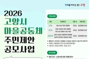 【국제일보】 고양시(시장 이동환)는 이웃과 함께 마을 활동에 참여하며 주민 스스로 지역 문제를 해결해 나가는 '2026년 고양시 마을공동체 주민제안 공모사업'에 참여할 공동체를 내년 1월 19일부터 모집한다고 밝혔다. 이번 공모사업은 마을공동체 활동을 확산하고 공동체 간 네트워크를 형성해, 주민 주도로 지역사회의 다양한 문제를 해결함으로써 살기 좋은 지역사회를 만들어가기 위해 추진된다. 지원 대상은 고양시에 거주하거나 활동 중인 주민 모임으로 ▲(1단계) 5인 이상 ▲(2단계 및 공동주택) 10인 이상의 공동체다. 참여를 희망하는 공동체는 내년 1월 19일부터 21일까지 신청서 등 구비서류를 지참해 고양시자치공동체지원센터로 방문해 신청하면 된다. 심사를 통해 선정된 공동체에는 사업 단계에 따라 최대 200만 원에서 500만 원까지의 사업비가 지원될 예정이다. 또한 공모사업 참여를 희망하는 고양시민과 공동체를 대상으로 내년 1월 2일부터 16일까지 사전컨설팅을 운영한다. 사전컨설팅에서는 공모사업 전반에 대한 설명과 함께 신청서 작성 방법 등에 대한 안내를 받을 수 있다. 고양시 관계자는 "이번 공모사업이 주민 주도의 마을공동체 활동을 확산하고 지역 문제 해결
