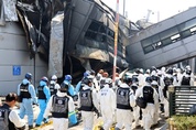 (대전=연합뉴스) 74명의 사상자가 발생한 대전 안전공업 화재와 관련, 관계 당국이 합동 감식에 나섰다. 대전경찰청은 23일 오전 10시 30분께 화재 현장에서 대전소방본부, 국립과학수사연구원, 대전고용노동청 등 9개 관계 기관과 합동 감식에 나서 6시간 30분 만인 오후 5시께 종료했다. 이날 감식에는 62명의 인력과 함께 인명 수색에도 쓰였던 로봇 개와 드론, 내시경 장비 등이 투입됐다. 유가족 대표 2명도 합동 감식을 참관했다. 당국은 유력한 발화지로 추정되는 공장 1층에 감식반을 투입해 설비 구조 등을 확인하고 화재 잔해물을 수거한 것으로 알려졌다. 합동 감식에 앞서 한차례 현장 조사를 진행한 경찰은 "1층 가공라인 천장 부근에서 불꽃이 튀는 것을 봤다"는 안전공업 관계자 진술을 확보했다. 불이 난 이 공장 1층에는 다수의 생산라인이 혼재됐고 공정 특성상 24시간 가동해야 해 점심시간에도 상주하는 직원이 있었던 것으로 파악됐다. 사망자 14명 중 9명이 발견된 2층과 3층 사이 복층 구조 휴게시설의 불법 증개축 여부는 물론 절삭유·세척유 취급 때 발생한 유증기나 기름때 등 화재 확산 요인도 감식 대상이다. 경찰은 확보한 진술 등을 토대로 공장 1층 발