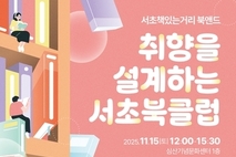 【국제일보】 서울 서초구(구청장 전성수)는 오는 15일 심산기념문화센터에서 진정한 독서의 즐거움을 누릴 수 있는 독서문화축제 '서초책있는거리 북앤드(&) - 취향을 설계하는 서초북클럽'을 개최한다고 밝혔다. '서초책있는거리 북앤드'는 지역 내 독서 문화 활성화와 독서 공동체 간의 교류 증진을 목표로, 서초구에서 활동하는 다양한 독서동아리와 자신의 독서 취향을 나누고 싶은 사람들을 위한 행사다. 지난 봄, 여름, 가을 반포대로 서초책있는거리에서 북런치(4월), 북캉스(6월), 북캠핑(10월)으로 가족과 어린이들이 도심 속 거리의 독서문화축제를 즐겼다면, 이번에는 소규모의 북클럽을 대상으로 취향의 발견과 상호 연결에 초점을 맞췄다. 15일 오전 12시부터 시작되는 행사에는 지역에서 활동하는 독서동아리들을 한눈에 볼 수 있는 '서초독서동아리 네트워크 전시'와 서초구 독서회를 소개하고 새로운 회원도 모집하는 '우리 동네 북클럽 부스'가 마련된다. 명화 미니북으로 책갈피를 만들어보는 등 소규모 체험들도 진행될 예정이다. 이와 함께 독립출판사 홍보부스도 운영돼 곰곰출판, 여름의 서재 등 5개의 독립출판사가 참여한다. 기존 출판 시장에서는 접하기 어려운 뚜렷한 개성과 철