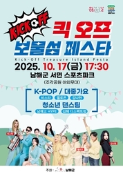 【국제일보】 남해군은 오는 17일 오후 5시 30분 서면 스포츠파크(조각공원 야외무대)에서 '킥 오프! 보물섬 페스타'를 개최한다고 밝혔다. 이번 행사는 경남 문화예술주간(GAW) 및 10월 '문화의 달'을 기념해 마련됐으며, 군민에게 다채로운 문화 향유 기회를 제공하고 청소년을 비롯한 지역 주민이 함께 어울릴 수 있는 무대를 선보일 예정이다. 이날 페스타에서는 ▲혼성그룹 비스타 ▲K-pop 밴드 옐로은 ▲가수 김나현 등이 K-pop과 대중가요 공연을 선보인다. 또한 남해고 HYPE와 김해 디스펙트럼 등 청소년 댄스팀이 출연해 흥겨운 무대를 꾸민다. 또한 지난 6월 개관한 보물섬FC 클럽하우스 축구부원들이 특별 댄스 공연을 준비해 관객들의 기대감을 더욱 높이고 있다. 김지영 남해군 문화체육과장은 "킥 오프! 보물섬 페스타는 군민 모두가 즐길 수 있는 청춘·열정·화합의 무대가 될 것"이라며, "음악과 춤이 어우러진 공연을 통해 세대 간 공감과 소통의 장을 만들 것으로 기대되니 많은 분들이 함께해 주시면 좋겠다"고 밝혔다.