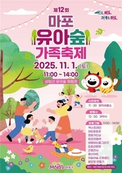 【국제일보】 서울 마포구(구청장 박강수)는 아이들과 가족이 함께 도심 속에서 자연을 즐길 수 있는 '제12회 유아숲 가족축제'를 오는 11월 1일 상암근린공원 내 유아숲체험원에서 개최한다고 밝혔다. '유아숲 가족축제'는 도심 속에서도 아이들이 가족과 함께 자연을 느끼고 배우며 성장할 수 있는 산림 체험 축제로, 지역 주민들의 꾸준한 관심과 참여 속에 올해로 12회째를 맞이한다. 이번 축제에서는 관내 어린이집과 초등학교, 일반 가족 등 약 300명이 참여해 자연과 교감하며 특별한 추억을 쌓을 예정이다. 행사장 곳곳에서는 아이들의 호기심을 자극하는 '깡통 열차 체험', 온 가족이 함께 웃고 즐기는 '버블&마술쇼', 자연 속에서 추억을 남기는 '야외 포토월', 아이와 부모가 함께 토피어리 화분으로 정원을 만드는 '숲속 토피어리 가족 정원' 등 다채로운 프로그램이 펼쳐진다. 이와 함께 '여행하는 돌 그림 그리기', '손수건을 이용한 염색 체험', 도토리를 보자기에 올려놓고 튕기는 '도토리 팡팡', 여러 곤충 표본을 관찰하고 만나는 '곤충아∼ 우리 친구 할까?' 등 자연친화적 프로그램을 통해 아이들이 자연의 소중함을 몸소 배우고 느낄 수 있는 시간도 마련된다. 참여