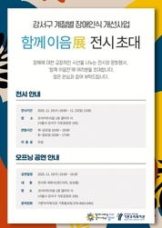 【국제일보】 서울 강서구(구청장 진교훈)는 '계절별 장애인식개선사업'의 일환으로 강서아트리움(가로공원로 195) 갤러리에서 전시회를 개최한다고 밝혔다. 구는 장애에 대한 긍정적 인식을 확산하고, 예술로 장애인과 비장애인의 마음을 잇기 위해 <함께 이음展> 회화 전시회를 마련했다. 전시는 오는 19일 오후 4시 개막식을 시작으로 23일 오후 1시까지 진행된다. 이번 행사에는 지역장애인이 제작한 예술 작품 총 55점이 전시된다. 전시회 관람은 무료다. 개막식은 모래를 활용해 장애인식 개선 메시지를 전하는 '샌드아트 공연'으로 문을 연다. 이어 4인조 앙상블 팀 '위드월드'가 바이올린, 플루트, 클라리넷 공연으로 '마법의 성'과 '당신은 사랑받기 위해 태어난 사람'을 연주하며 축하공연을 선보인다. 지역장애인들은 수채색연필, 아크릴물감, 조개껍질, 면봉, 반짝이풀 등 다양한 재료를 활용해 자신만의 방식으로 세상을 표현하며, 따뜻하고 진솔한 메시지를 담은 회화 작품을 전시할 예정이다. 전시 작품은 계절의 변화, 일상 속 소중한 순간, 내면의 아름다움을 비롯해 다채로운 주제로 구성된다. 특히, 한화석 작가의 작품 5점도 함께 전시된다. 한 작가는 장소, 사람