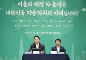 (서울=연합뉴스) 서울시와 25개 자치구가 22일 중앙정부의 서울시에 대한 국비 차등 보조를 개선하라고 촉구했다. 시와 구청장협의회(회장 서강석 송파구청장)는 이날 오전 시청 대회의실에서 소비쿠폰 등 정책 비용을 지자체에 전가하는 문제를 지적하고 차등적인 국비 보조 관행을 개선할 것을 촉구하는 '서울시·자치구 지방재정 공동선언'을 발표했다. 이날 행사에는 오세훈 서울시장과 자치구 구청장들이 참석했다. 지방자치 30주년을 맞아 발표한 이번 공동선언문에는 저출생·고령화와 도시기반시설 노후화로 재정 지출이 늘고 있는 가운데 국비 차등 보조로 부담이 가중되는 상황을 바로잡아야 한다는 의지가 담겼다. 시와 구청장협의회는 공동선언문에서 "중앙정부의 서울시에 대한 불합리한 차등 보조를 개선할 것을 요청한다"면서 "국가 차원의 제도 개선을 통해 지방재정 확충과 자율성을 보장해야 한다"고 밝혔다. 같은 사업인데도 서울만 국비 보조율을 낮게 적용하는 문제를 해결해야 한다는 것이다. 민생회복 소비쿠폰의 경우 국고 보조율이 전국 17개 시도 가운데 서울만 75%고 나머지 시도는 90%였다. 시와 구청장협의회는 이어 "시와 자치구는 모든 세대가 함께 누릴 수 있는 지속 가능하고 책