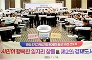 【국제일보】 인천광역시(시장 유정복)는 지난 11월 18일 미추홀타워에서 '민선 8기 지역일자리 60만 개 달성 비전 선포식'을 개최하고, 시민과 함께하는 일자리 도시로의 도약을 다짐했다. 이번 선포식은 내년도 인천의 경제 및 산업정책을 시민과 공유하는 주요업무보고회 직후 진행돼 그 의미를 더했다. 유정복 시장을 비롯한 관계자와 시민들이 참석해, 민선 8기 일자리 성과를 되짚고 미래 비전을 공유하는 뜻깊은 시간을 가졌다. 참석자 전원이 "시민이 행복한 일자리 60만 개", "시민과 함께하는 제2경제도시"라는 구호를 함께 외치며 목표 달성을 위한 결의를 다졌다. 이번 선포식은 인천시가 거둔 주목할 만한 고용 성과를 바탕으로 마련됐다. 인천시는 민선8기 출범 이후 2023년부터 2025년 9월까지 총 48만 개의 지역일자리를 달성했으며, 2026년에 목표인 60만 개를 초과 달성할 것으로 기대되고 있다. 특히 인천시는 고용률과 경제활동인구수에서 3년 연속 광역시 1위를 기록하고 있으며, 일자리의 질을 보여주는 상용근로자수 역시 3년 연속 1위를 차지하는 등 양과 질 모든 면에서 최고의 고용 성적을 거두었다. 이러한 실적을 바탕으로 고용노동부가 주관하는 전국 지방