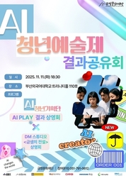 【국제일보】 부산시 금정구 금정문화재단(이사장 윤일현)은 차세대 청년문화 활성화 사업 'AI 청년예술제' 결과 공유회를 오는 11월 11일 오후 6시 30분부터 부산외국어대학교 트리니티홀에서 개최한다고 밝혔다. 이번 결과 공유회는 2025년 한 해 동안 추진된 AI 기반 청년 예술 창작 프로그램의 성과를 공유하고, 지역사회와 함께 미래지향적 문화콘텐츠의 가능성을 모색하기 위해 마련된 자리다. 'AI PLAY 기획단'의 이름으로 구성된 AI 청년기획단이 참여해 제작한 다양한 방식의 AI 융합 예술 콘텐츠와 더불어, '2025 찾아가는 달빛극장' 및 'AI로 되살아나는 부산의 설화 - 금샘의 전설' 영상 시연회도 함께 진행돼, AI를 기반으로 한 다양한 예술 프로젝트의 결과물을 한 자리에서 만나볼 수 있다. 이홍길 금정문화재단 상임이사는 "AI와 예술의 융합은 새로운 창작의 시대를 여는 의미 있는 시도"라며 "청년 예술가들이 기술과 예술의 경계를 넘나들며 금정의 문화적 다양성을 확장해 나가길 바란다"라고 전했다. 윤일현 금정문화재단 이사장은 "이번 'AI 청년예술제 결과공유회'가 청년들의 실험적 예술 활동을 시민과 함께 나누는 소통의 장이 되길 바란다"라며 "금