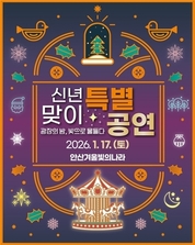 【국제일보】 안산시(시장 이민근)는 오는 17일 오후 5시, 안산문화광장에서 시민들과 함께 '신년맞이 특별공연'을 개최한다고 16일 밝혔다. 이번 특별공연에서는 시 승격 40주년을 기념하는 특별 조형물이 첫선을 보인다. 국내 최초 계획도시에서 4차 산업혁명 선도 도시로 도약한 안산의 자부심을 상징하는 이 조형물은, 지난 40년간 시민들의 응원과 헌신이 빚어낸 결실을 담고 있다. 특별공연에는 인기 뮤지션 지올팍과 시온이 출연해 안산의 환한 겨울밤을 더욱 따뜻하게 물들이며, 시민들과 새해의 시작을 함께한다. 이날 오후 2시부터는 썬큰광장에서 시민 참여 이벤트도 펼쳐진다. 안산국제거리극축제 공식 인스타그램을 팔로우한 시민에게 붕어빵 또는 어묵(선택)을 제공할 예정이다. 안산문화광장에서는 앞서 지난달 7일 점등식을 열며 시작된 '안산 겨울 빛의 나라'가 한 달여간 시민들의 뜨거운 성원 속에 이어지고 있다. 오는 1월 31일까지 안산문화광장을 환하게 밝힐 예정이다. 다만, 시민의 큰 사랑을 받았던 회전목마 프로그램은 지난달 31일을 기점으로 운영이 종료됐다. 체험 프로그램·스노우쇼·소원박스 등 다채로운 부대 프로그램은 이달 31일까지 계속 운영될 예정으로 남은 기간