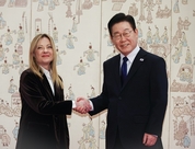 (서울=연합뉴스) 이재명 대통령과 조르자 멜로니 이탈리아 총리의 정상회담이 19일 청와대에서 열렸다. 이 대통령이 지난달 29일 청와대로 복귀한 뒤 처음으로 맞는 외국 정상이다. 어두운 남색 정장에 파란색 넥타이를 착용한 이 대통령은 멜로니 총리 도착 전 본관 문 앞에서 옷매무시를 가다듬으며 그를 기다렸다. 멜로니 총리가 도착하자 이 대통령은 "환영합니다"라고 인사하며 악수했다. 이후 이 대통령은 멜로니 총리와 함께 본관 안쪽으로 걸어가며 "이탈리아 총리께서 한국에 오신 것은 19년 만이라고 하는데, 한국에 오느라 고생하셨다"고 거듭 환영의 뜻을 밝혔다. 이 대통령의 환대에 멜로니 총리는 "그라찌에(Grazie·'감사합니다'라는 뜻의 이탈리아어)"라고 화답하기도 했다. 이어 멜로니 총리의 방명록 작성, 양 정상 기념 촬영 등의 순서가 진행된 뒤 본격적인 양국 정상회담이 시작됐다. 회담은 소인수·확대 회담 등을 합쳐 약 70분간 진행되며, 두 정상은 양국 협력 방안과 국제 현안 등에 관해 논의할 예정이다. 아울러 이 대통령은 다음 달 이탈리아에서 개최되는 밀라노 동계올림픽에서 한국 선수들이 기량을 발휘할 수 있도록 멜로니 총리에게 선수단과 국민 안전에 관심을